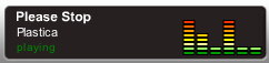 Today we've had the audacity to upload four pretty idiotic outtakes from last night's practice that probably should ever be heard, by anyone, ever. Firstly, we don't have a singer yet, so it's all instrumental. Second, I think Rolling Rock put crack in their beer this week because we decided speeding up both of our Journey songs was a fantastic idea. The image at left here is of course a screencap of the MySpace player, and it couldn't say it any more perfectly: "Please Stop Plastica playing" when our insanely fast "Don't Stop Believing" cover is foolishly selected! And then there's Master of Puppets which we always like screwing with. So yeah, it's all pretty zany stuff & I'm happy to say that we are having ridiculous fun with Plastica again. Wheeee!