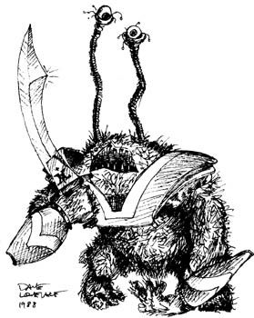 be wearing armor (AC: 4) and would possibly be carrying one or more large, sharp, one-handed non-magical weapons. Because of their sheer strength,