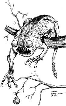 The dreaded Axxtoer is a ferocious, tree-dwelling beast. It feeds on blood, preying at night. Whole villages have been wiped out by a single