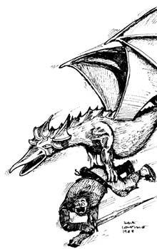 victim dies, the Carinthea will carry it away to its treetop nest unless somehow stopped within that round. The nest holding eggs (10%) or hatchlings (5%) will be strictly guarded by a very determined mother (attacking at +2 to hit and inflicting double damage). Carintheas are just intelligent enough to hold a grudge, and have been known to act out of spite. They can be put at bay using an egg or hatchling held hostage, but will thereafter set out to exact revenge until the day it dies. |