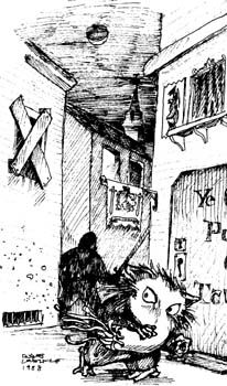 treasure for their hollow's hoard. The creature can pick pockets as a 10th level Thief, and all remaining thieves' abilities are at level 6, except OPEN LOCKS, FIND TRAPS, and READ LANGUAGES which it is not intelligent enough to perform at more a than first level mastery. In conflict, the Crimnag squirts acid from its protruding snout, causing 1-8 damage on contact. The acid will continue to rot affected flesh, causing 1-4 damage every three rounds for a total of 3-24 rounds unless some sort of CURE treatment is applied. In serious situations of jeopardy, the crimnag can belch a BLINDING cloud (30' diameter) once per day. The blinding is very temporary (1-3 rounds), but should allow plenty of time for escape. If an impending conflict looks bad for the crimnag, it will not hesitate to belch its stinging cloud to avoid it altogether. |