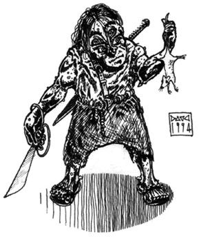 usually keep to themselves. Their communities are very rare and kept under close guard. Dacin sociology can vary, but gravitates towards an untrusting self-promotional quality of chaotic behavior and individuality. They are eager to overcome the stigma of their appearance, but at the same time begrudge those not immediately impressed by their services or abilities. Dacin typically scrape to survive, and are not above stealing at all. They will bargain and reason their way out of any argument, just as much as they would for a free rat sandwich. Needless to say, bribery is an effective tool with a Dacin, at least in the short term. Most Dacin are good with weapons, and their four eyes aid with enhanced depth perception in any situation. In the case of battle, its attack rolls get a +2 bonus, and it has its effective AC reduced by 2 points as well, as long as it can see its assailant. Dacin have lifespans similar to dwarves, living to 200 years and beyond. But they are uncharismatic even to each other, so their numbers are still sparse... |
