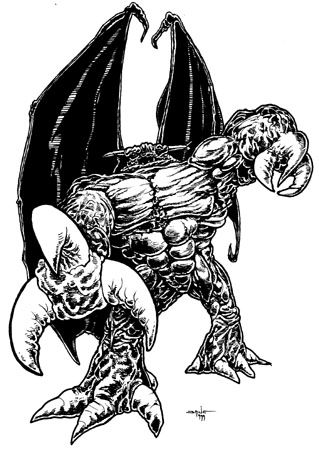 attacking with its immense lobster-claw mitts is enough to deliver potent amounts of damage. Hulk Devils can use the following spell-like powers at will: DETECT/DISPEL MAGIC/GOOD, HOLD MONSTER, FEAR, HYPNOTIZE, SLEEP, CHARM, GATE 1-2 Pit Fiends (40% success), and TELEKINESE 7000gp WEIGHT. |