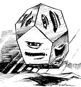 the discs of his half. Ethriam appears as a gleaming, platinum dodecahedron floating above the ground, with each facial plane of his person showing a different emotion. As he speaks or acts, the representative plane of the emotion being acted on rotates to face his subject. When Ethriam wished to do harm, he will direct a near-infinite line of energy from his Anger face to deliver 80 points of damage, or 2/5 of the total hit points the god retains at the time of attack. For example, if Ethriam is reduced to 200 hit points, his attack will be thus weakened to 80 points. This attack never misses, but saves vs. Death Magic are allowed at -5 for half damage. Ethriam can use any spell to attack or defend, and can only be affacted by spells of a physically damaging sort. Weapons will do no harm to him unless a blunt one of extraordinary magical power is used (+5 or an ARTIFACT). |