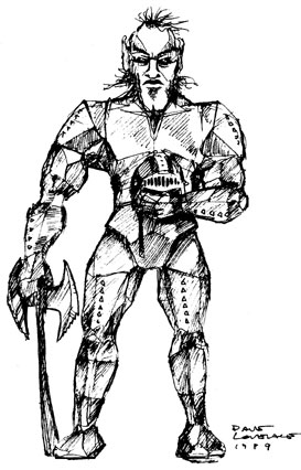any or all of these guards: 2-7 polar bears (50%), 4-36 Goblins (85%), 2-12 artic huskies (60%), and/or 1-4 rogue Trolls (25%). In combat, Ice Giants have the strength of Cloud Giants (MM1). It can hurl giant ice chunks up to 180 feet away. The devastating damage (5-40) is compounded with a STUN effect, rendering those hit unconscious for 2-8 rounds unless a save versus Paralysis is made. Otherwise the Giant will weild a large, two handed sword or some sort in a close-range melee. These large humanoids average 20 feet in height, with bluish-white skin and pale yellow eyes. They have mangy, spase hair, if any at all. Warriors wear hardened steel plate mail of the most durable kind. |