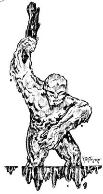 will cost 15,000gp. The Mud Golem is similar in strength to a Flesh Golem, but causes less pommeling damage (1-6) due to their nature. It is for this reason that they will usually be given blunt, mauling weapons for its guarding purposes. The use of a Mud Golem is popular not only because of the relative financial savings, but due to the Golem's complete immunity to all forms of physical attack, magical or non-magical. The Golem simply absorbs the attack. Only spells of a destructive nature such as MAGIC MISSILE or DISCINTIGRATE give it any trouble. Also, COLD and FIRE attacks will cause one-quarter normal damage, but not ELECTRICAL ones. The owner of a Mud Golem must be prepared for daily upkeep. EIther physically splashing water onto it, or casting another MOISTEN cantrip will keep it from drying out. When this maintenence is belayed, the Golem will lose 1 hit point per hour after 12 hours, and 5 per hour after 24. These lost hit points can never be restored without the casting of a full WISH, or also ALTER REALITY by an Illusionist comrade. The golem can not be kept underwater for a long time either; it dissolves completely after 24 hours and suffers exposure damage at the same rate as when left to dry up. |