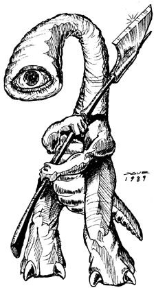 of weapon use, this doing 2 points less damage than a normal hit by their weapon might otherwise inflict. Their profoundly large eyestalk is
