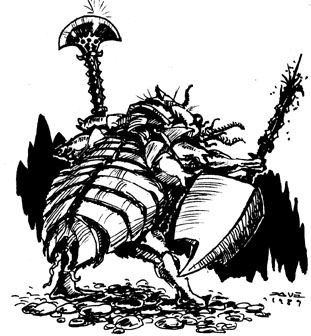 armor class of 1, but is otherwise AC5. These dirty Insect-men have a strength-draining toxicity to their bite (1-12), which causes those hit to have both their Strength and Dexterity scores halved (save at -1). This lasts for 1-2 days, but further bites will not worsen the effect. Otherwise, Flea Macronids can use one or two weapons in combat while still carrying one or two shields because of their multiple limbs. |