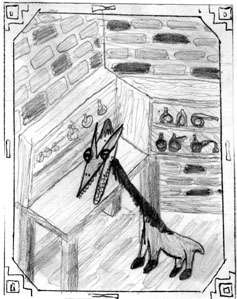 alchemists, sages, or the like. This creature is capable of learning and using either Magic-User or Illusionist spells (but never both) up to 7th level mastery. It would use more powerful spells to defend itself and its allies, and will even bite (1-4) if absolutely necessary. It would certainly rather drop a Cantrip and make a hasty retreat, however. A special physical ability possessed by all Nabrigs is something they call "Muscle Burn." It lasts 5 rounds and can only be done once daily, being basically a super-powered frenzy of strength and speed. Move rate shoots way up to a top speed of 40 feet per round, their effective AC becomes 0, they can absorb any blunt attack without harm, and they can lift up to 5,000gp weight (moving aside 10,000gp)! This almost comical display of disproportionate power is rarely used for offense, since for an hour afterwards the Nabrig is drained and susceptable to attack. |