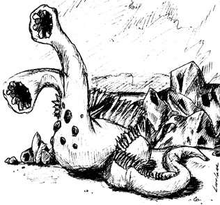 Dwelling in preferably cold climes, the Throkk is an exotic class of mineral eater. They are easily spotted in a drift, with their light-green