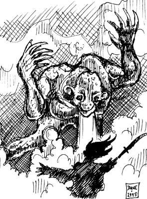 fever for two weeks before finally succombing to the disease, unless CURE DISEASE is cast upon them. The Plague Troll has extra-sharp, short-sword-like claws (1-10 damage each), and an exceptional Trollish ability to REGENERATE (4hp per round). They also have 60' INFRAVISION. |