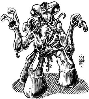 one possible source for many of these races: a biogenetic "seed-planting" form of alien life that they had dubbed the Uranians. In an impossible, non-Euclidian mountaintop fortress filled with seemingly magical objects and lifeforms, these Uranians were found nurturing several experiments of horrifying natures while the Xenoleague looked on in the shadows. Their spying was uncovered by one of the beings, and only one member of the league managed to escape. The fortress was gone days later when he returned, but his tales of six-limbed tentacled nightmares were proved by an image-recalling talisman smuggled from their lair (or vessel!). If more were ever to encounter a Uranian, they would discover them to be vicious in any physical confrontation, attacking three times per round using head-swallowing appendages (1-10 each, decapitating on a natural 20 rolled "to hit"), and instruments of an advanced technical source. Their standards and motivation are truly of an alien origin, and it is left to the DM to decide how best to suit their campaigns with an "alien encounter" featuring Uranians! |