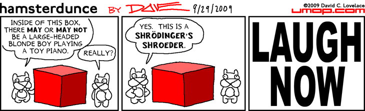 PERMALINK TO THIS COMIC: http://umop.com/hamsterdunce/001.htm Check it out, it's the first one. Man, all the way back in 2009. What a prolific guy this Dave is. |