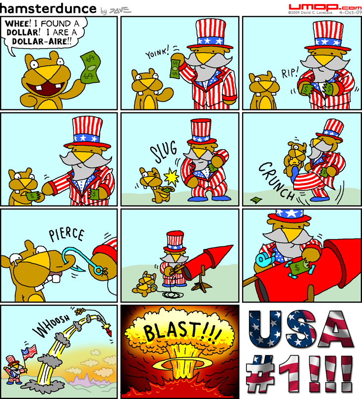 PERMALINK TO THIS COMIC: http://umop.com/hamsterdunce/006.htm A very special Sunday edition Hamsterdunce comic. Everything about life is terrific! |