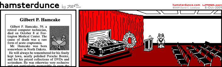 PERMALINK TO THIS COMIC: http://umop.com/hamsterdunce/010.htm This one makes me think of that scene from "A Christmas Carol" where Jacob Marley bellows, "MANKIND should have been our business!" Not to be confused with that BB gun movie, mind you. |