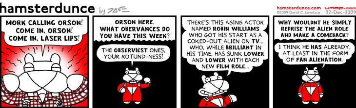 PERMALINK TO THIS COMIC: http://umop.com/hamsterdunce/058.htm Just watched "Good Morning Vietnam" again last night, and I guess I'm just wistful for the pre-"Patch Adams" days... |