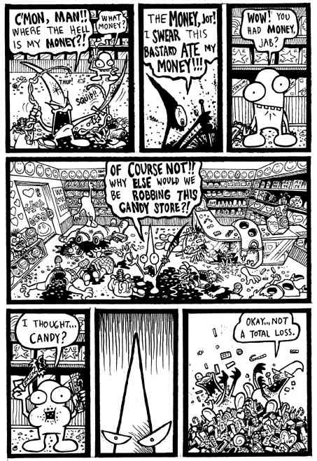there. They're these violent little any-characters that I kept doodling in the late-'90s, around the time