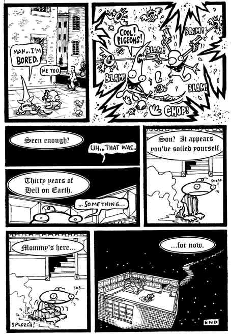 never got off the ground, since Carl and I were the only ones to produce anything for it. I'm not really proud of this work, but Jot+Jab fans might be interested in seeing their roots, so here ya go. It's a TAD metaphysical. Just a tad. |