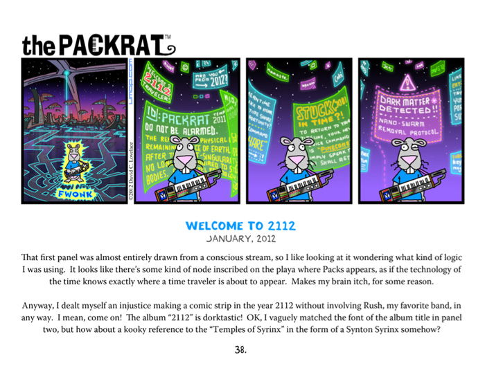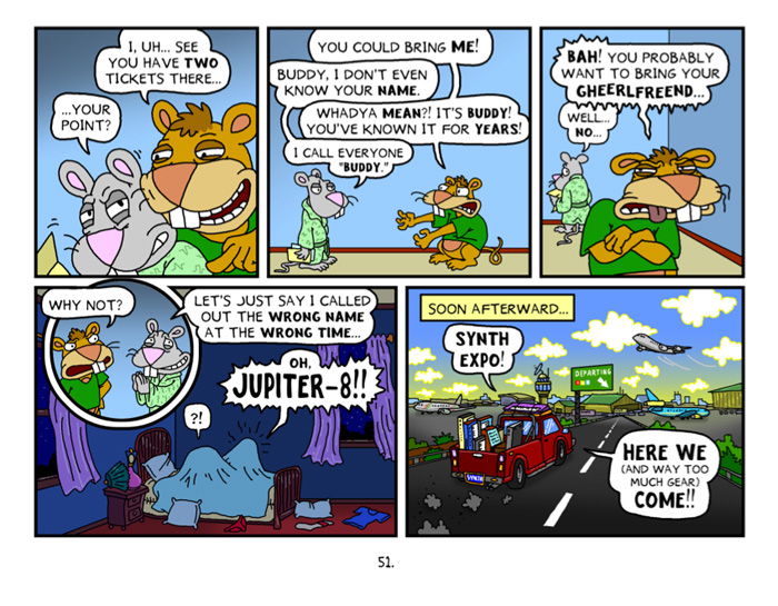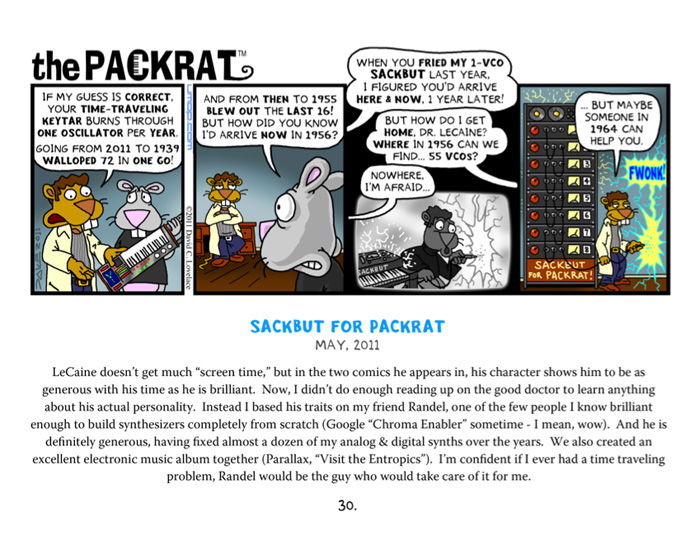 Since 2005, The Packrat has been a favorite of synthesizer and rodent fans alike. This potentially brilliant comic strip appeared in Keyboard Magazine monthly from 2010 and 2015 (as well as for a few months back in 2005 - 2006). Many of those comics, along with a few surprises, are hereby assembled in this 2012 collection, which you might just cherish more than your whole keyboard collection. Here is what you'll get for your almost-thirteen bucks:
