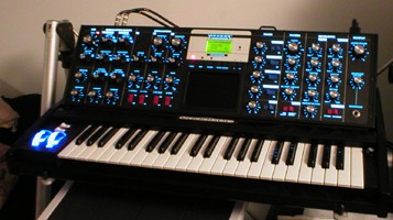 black Anniversary edition (some are signed by Bob Moog himself; mine is not...I lose) with a crazy-ass blue backlit panel. This is a